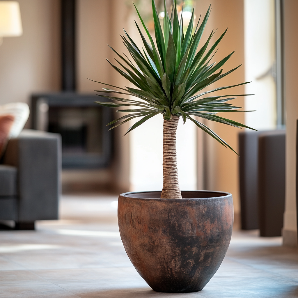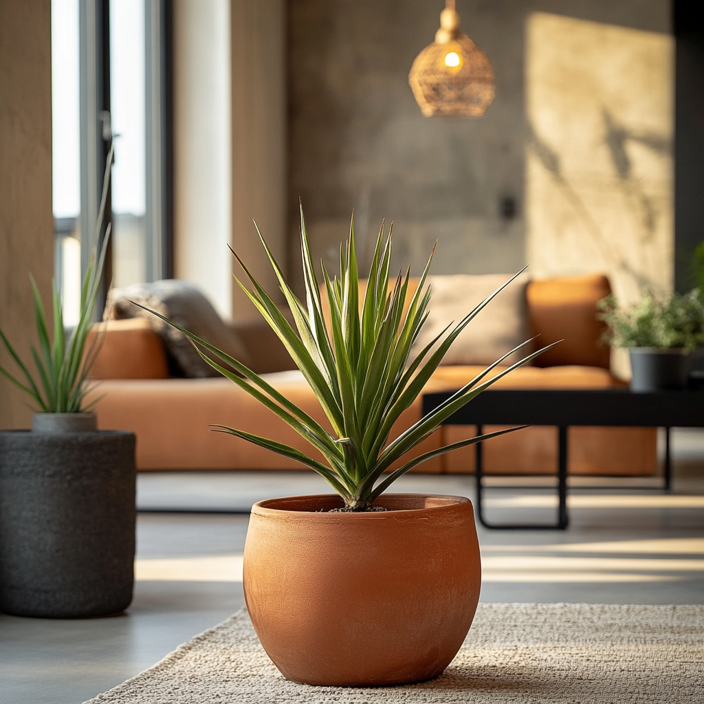 Yucca, pot en terre-cuite.