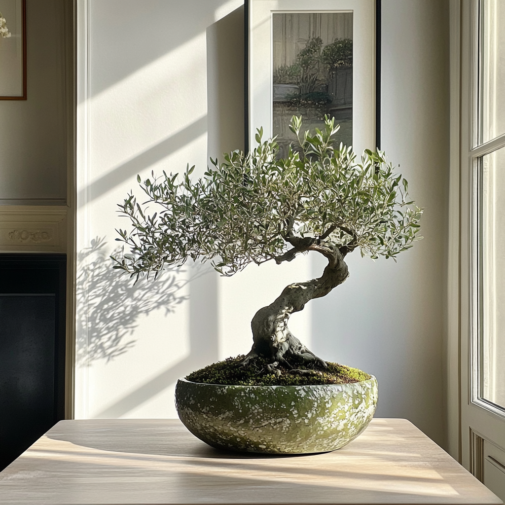 Olivier bonsaï, grande vasque en céramique.