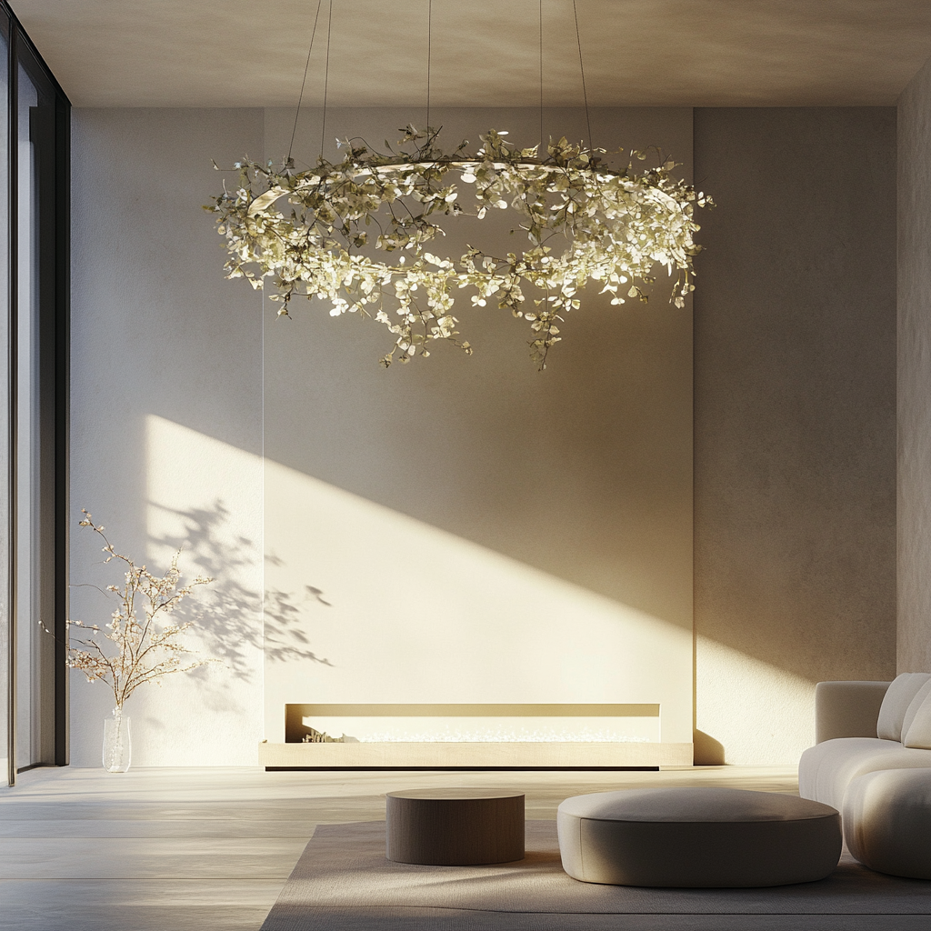 Suspension lumineuse, ornement végétal.