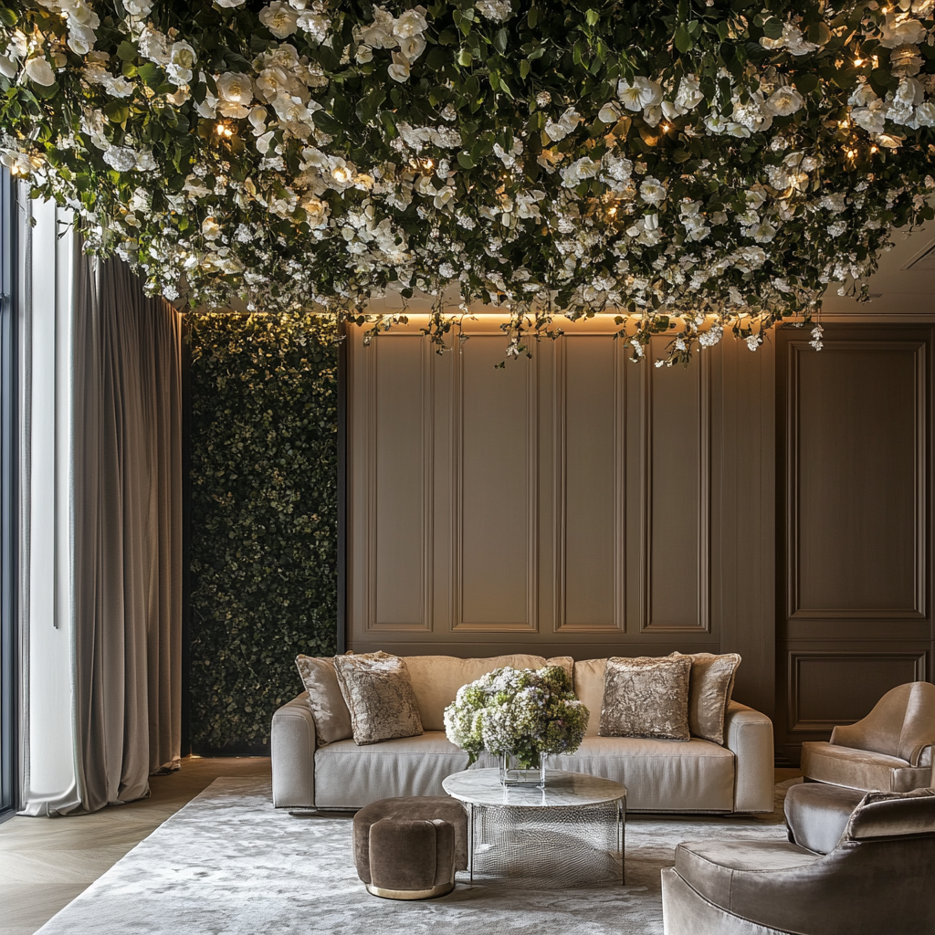 Cascade organique, plantes de type tropicale.